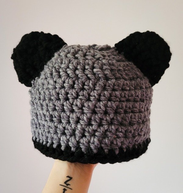 Gorro con orejitas tejido al crochet. Material: Lana gorda. Talle adolescentes / adultos.